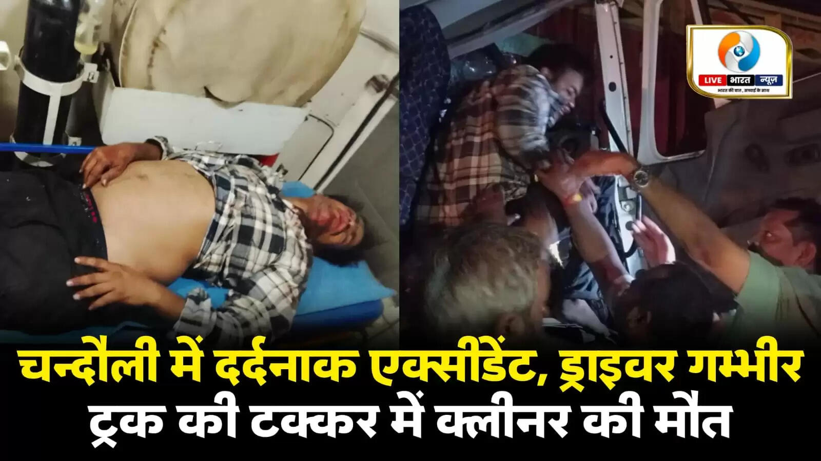 चंदौली में तेज रफ्तार का कहर, ट्रक की टक्कर में क्लीनर की मौत, ड्राइवर गंभीर