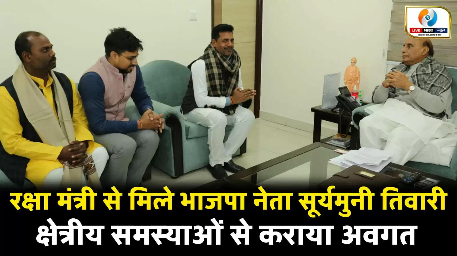 रक्षा मंत्री से मिले पूर्व भाजपा प्रत्याशी सूर्यमुनी तिवारी, क्षेत्रीय समस्याओं से कराया अवगत