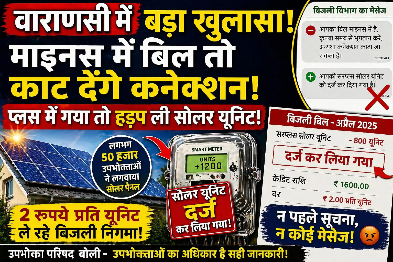 वाराणसी में स्मार्ट मीटर विवाद! सोलर यूनिट ‘हड़पने’ का आरोप, उपभोक्ताओं को सिर्फ ₹2 प्रति यूनिट भुगतान