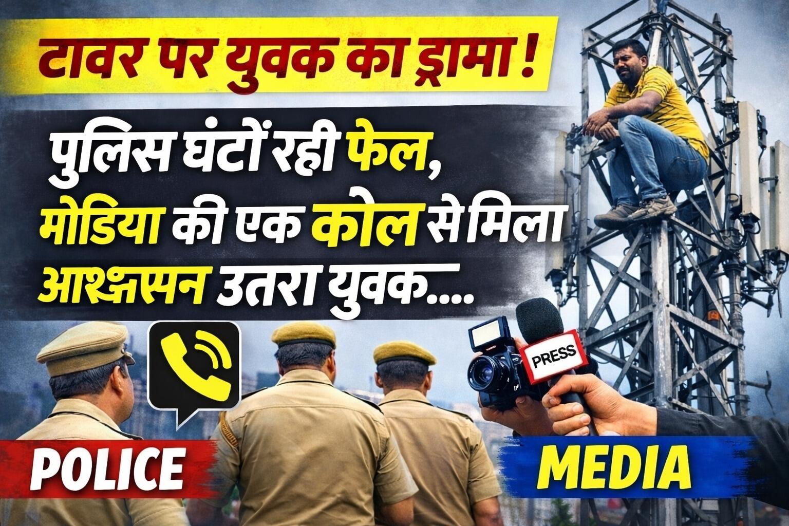 यही भरोसा निर्णायक साबित हुआ। मीडिया से बातचीत के बाद युवक का रुख बदला और उसने धीरे-धीरे नीचे उतरने का फैसला कर लिया। जैसे ही वह सुरक्षित नीचे आया, वहां मौजूद लोगों और पुलिस ने राहत की सांस ली।
